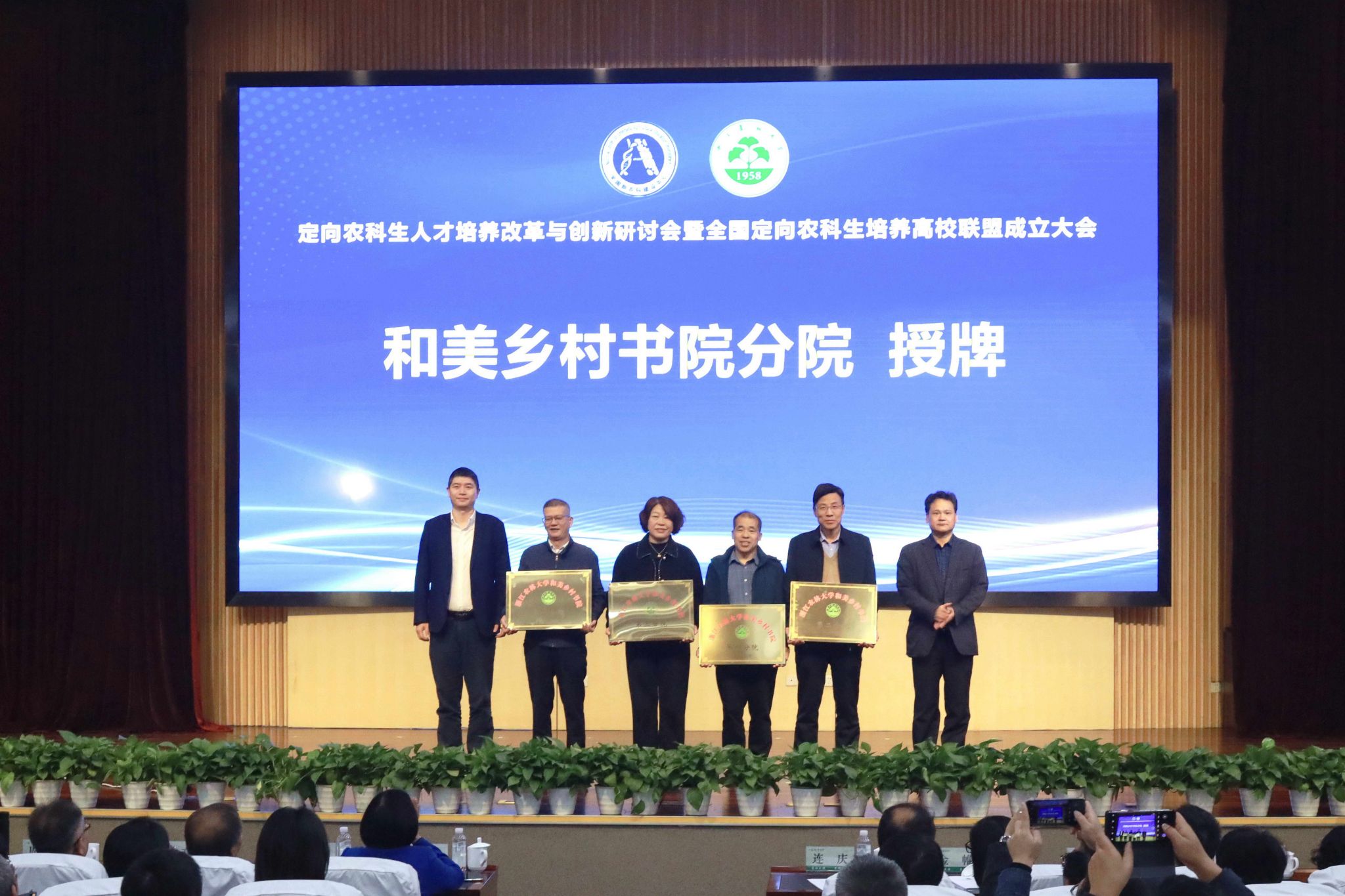 大會向輪值理事長單位、副理事長單位授牌,舉行了浙江農林大學和美鄉村書院揭牌儀式,并向和美鄉村書院分院授牌。