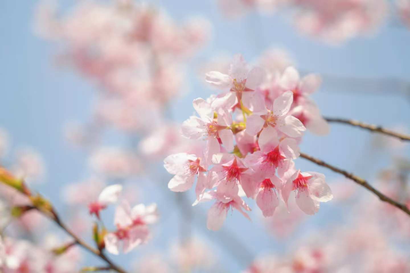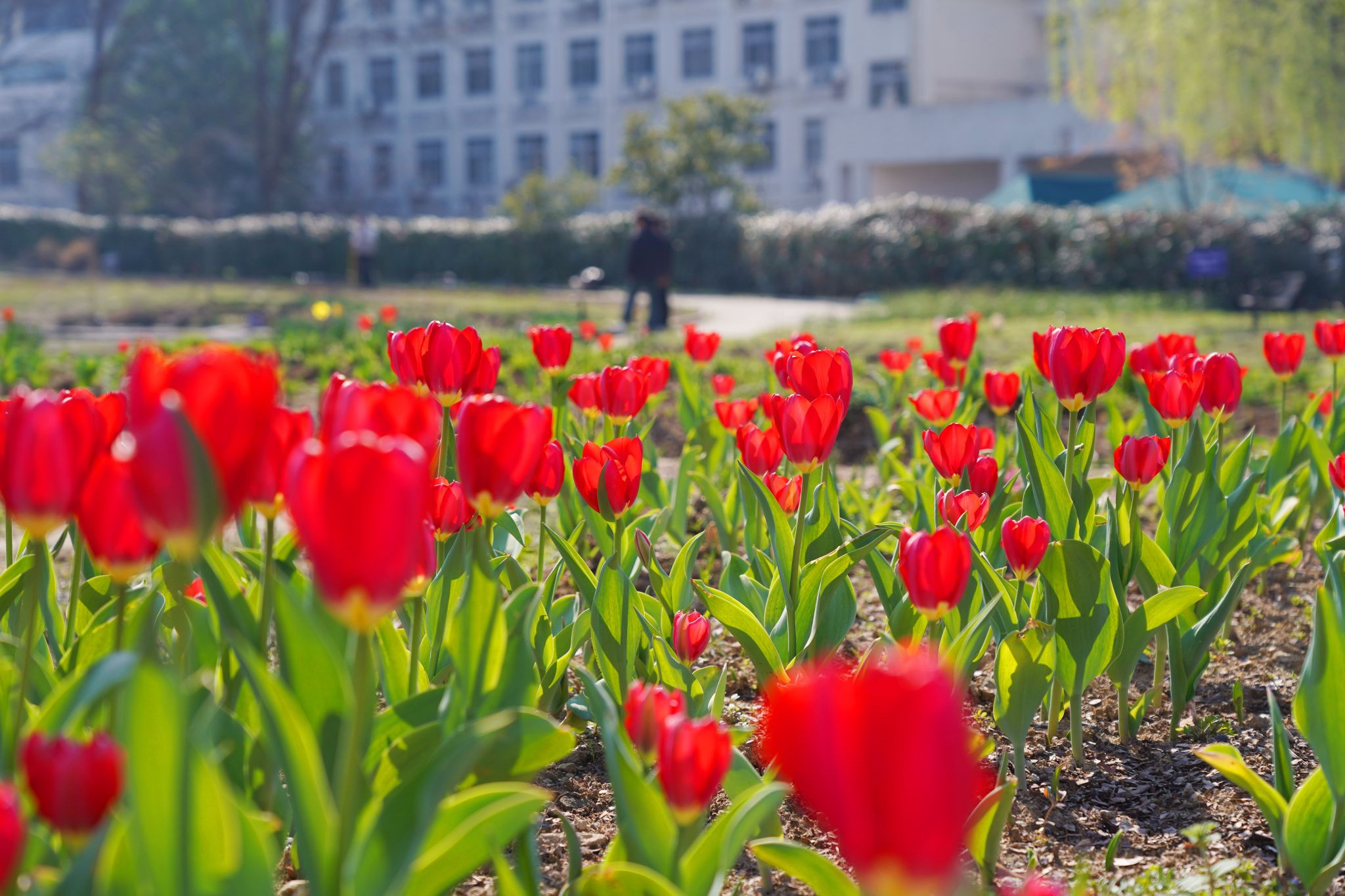 粉白的櫻花 火紅的郁金香 淡雅的繡球競相綻放