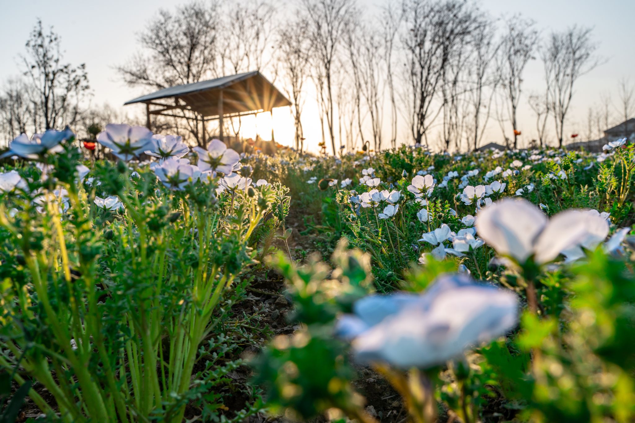 而低矮的喜林草則鋪開一片靜謐的藍紫海洋