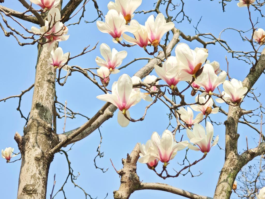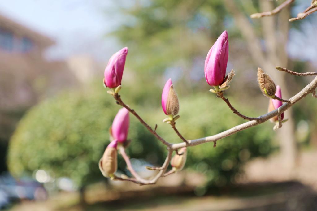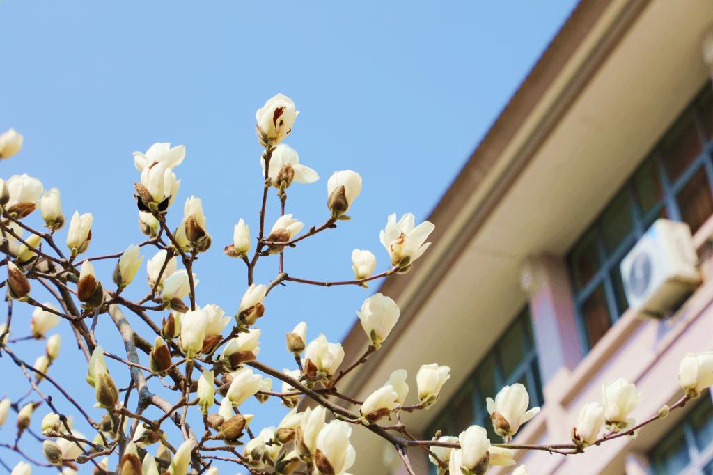 迎風生長的玉蘭,含苞待放,點綴枝頭;