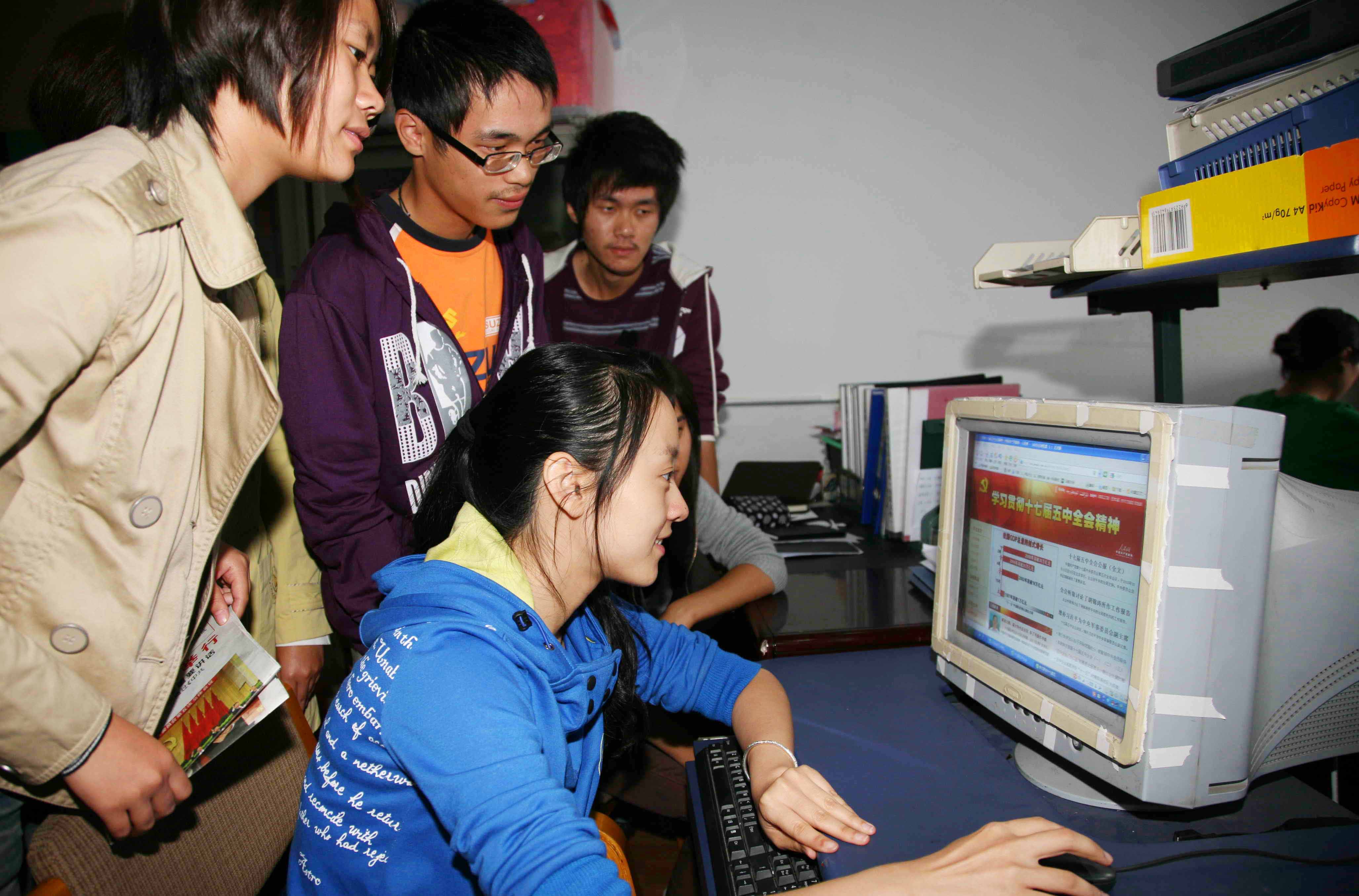 10月19日,經(jīng)濟(jì)管理學(xué)院的師生,分別圍坐在電腦前、教室里,通過網(wǎng)絡(luò)、黨報(bào)等媒體學(xué)習(xí)十七屆五中全會(huì)精神。