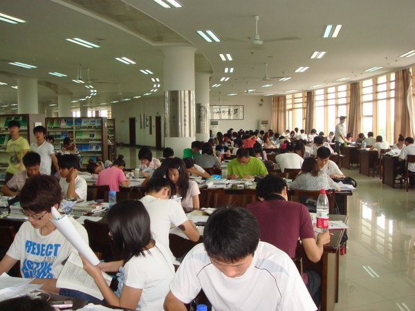 據(jù)了解,學生之所以不辭辛苦守候圖書館,主要是因為時值盛夏,酷暑難耐。圖書館環(huán)境幽雅、舒適,空調(diào)全方位開放,而且資料完備,復(fù)習時查閱也很方便,另有文獻資料打印服務(wù)窗口,可以最大限度滿足學生的學習需要,同學們可以心無旁騖,全身心投入復(fù)習。因此每當期末考試來臨,到圖書館復(fù)習是同學們的最佳選擇。