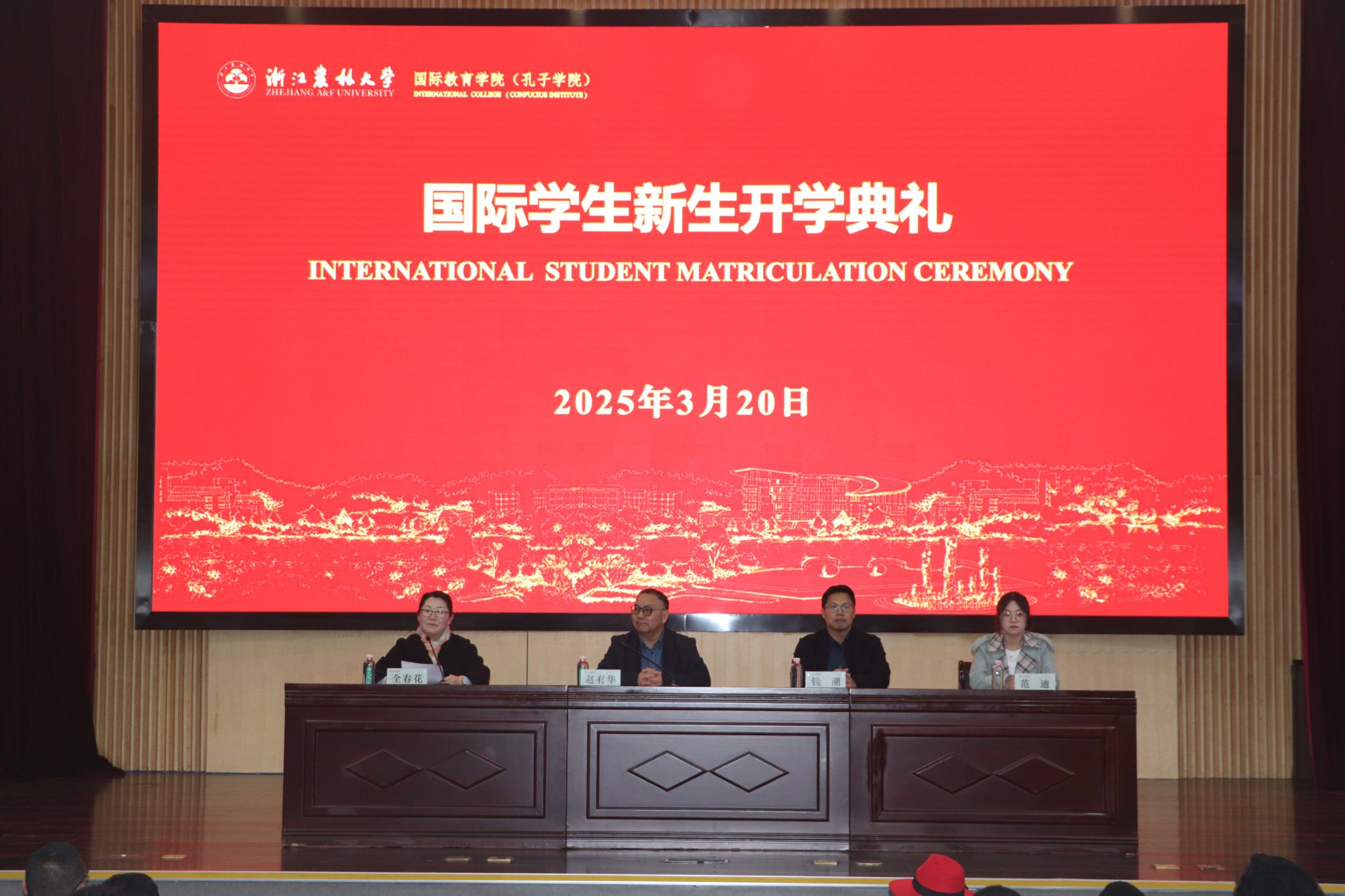 3月20日,浙江農林大學2025春季學期國際學生開學典禮暨法制安全教育會在圖書館第一報告廳舉行。國際教育學院(孔子學院)院長趙有華,以及學院相關負責人、全體輔導員、教師和管理人員、在校國際學生參加典禮。