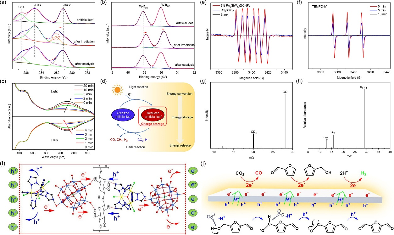 圖1. 人造樹葉設計、反應體系構建及能源轉化機制