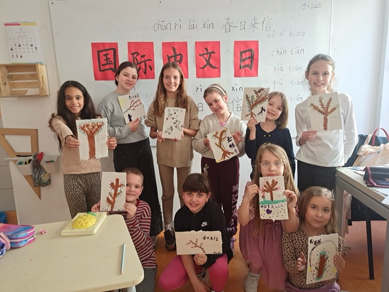 城堡山小學(Elementary School Tvrdjava)舉行“春日來信”國畫體驗活動。在老師的指導下,孩子們拿起毛筆,畫出自己心里的春天,書寫工整的漢字,制作成明信片,傾注著孩子們對國畫藝術的熱愛與對中文意境的獨特理解。